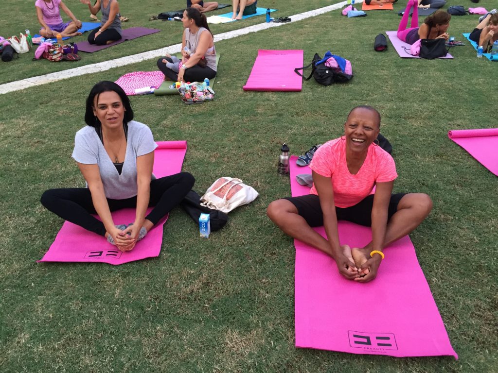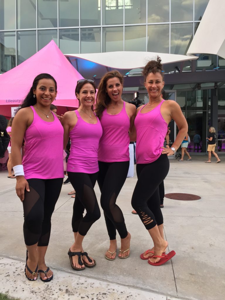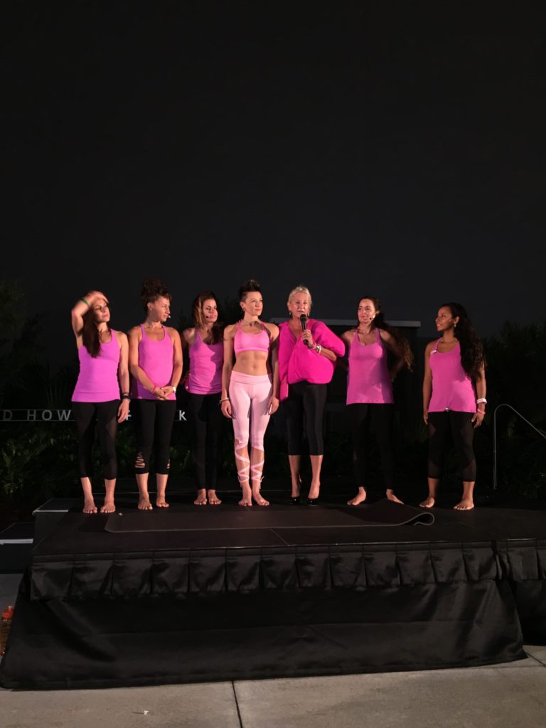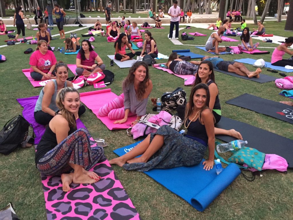 Yoga, State of the Art Facility, Miami Beach, and Raising Awareness about Breast Cancer? Seems like the recipe for a memorable Miami event. CGC jumped at the opportunity to get involved to support our client EBeauty Community’s 2nd Annual Yoga in the Park. Yoga in the Park is an incredible community building event that featured a an awe-inspiring large group outdoor yoga class and spectacular light show to #LightMiamiPink and kick off October and National Breast Cancer Awareness Month. The event was held at the world famous New World Symphony at Soundscape Park and highlighted by incredible visuals and amazing music from the New World Symphony Fellows. Over 250 individuals came together for a revitalizing day of yoga to honor all family members that have had their lives touched by cancer.