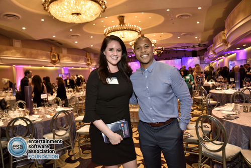 The evening kicked off with an industry networking reception and silent auction, continued with dinner and an awards ceremony, exciting live auction and appeal that raised over $240,000, and ended with a festive nightcap in the famed “Tonga Room” at the Fairmont. This year’s event also honored 2018 Visionary Award Recipient, Laila Shabir, who is the founder and CEO of The LearnDistrict. Laila has been a champion of women in STEAM through her company’s female-focused Girls Make Games summer camps, workshops, and games. She received her award and gave an inspirational speech about the necessity of diversity in the tech industry. She was even joined on stage by some of the ESA Foundation’s newest scholarship recipients.