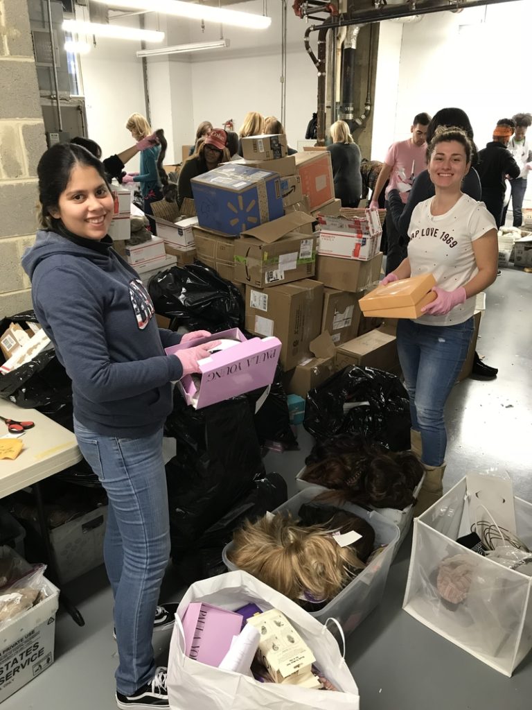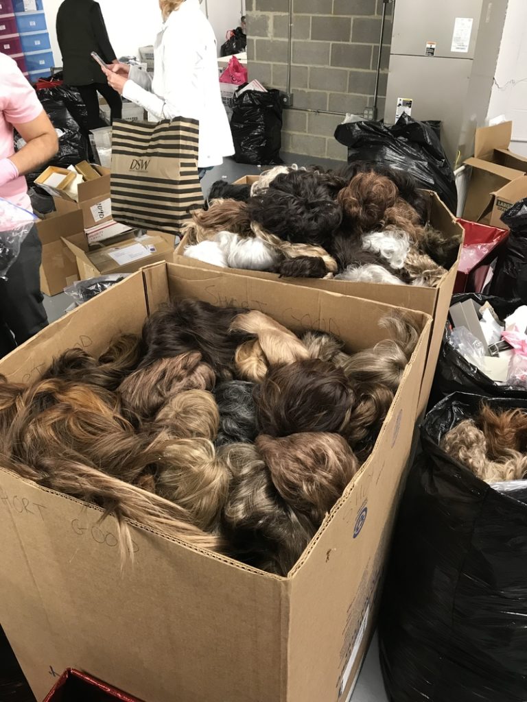 EBeauty hosts monthly Volunteer Days so that community members can come together to help prepare the wigs for distribution and learn more about their incredible mission. At a recent Volunteer Day, 30 volunteers came and sorted through more than 1,000 wigs that were received in the EBeauty warehouse. The wigs were categorized by color and length, checked for quality, and prepared for cleaning and refurbishing at Eivind and Hans of Georgetown Salon in Washington, D.C. The wigs will be distributed to women across the country who are undergoing treatment for cancer.